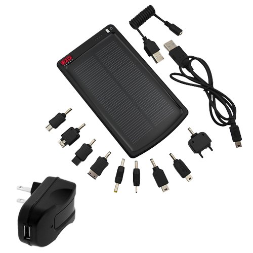 - Recharged by solar panel under sunlight. Universal, convenient, portable, and compact external rechargable back-up battery